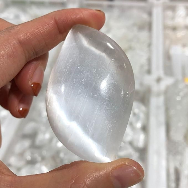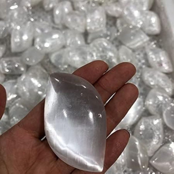 ICXLPMC House Collection Specimen 7cm Natural White Selenite Opal Game with Polished Plaster, Diamond Play Gem Plaster