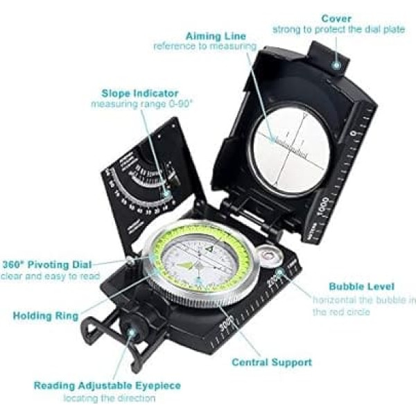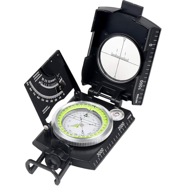 BIJIA Многофункциональный металлический военный водонепроницаемый высокоточный линзовый компас с клинометром и спиртовым уровнем для пеше