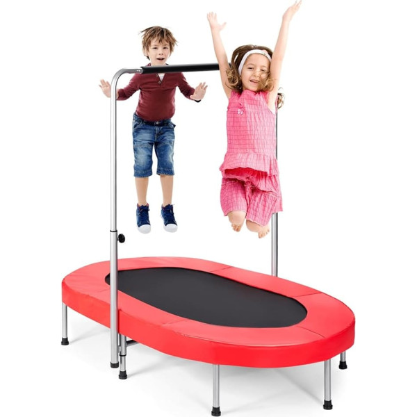 GOPLUS Фитнес-батут для 2 детей, 154 x 90 см, складной батут с 5 уровнями регулируемых перил, максимальная нагрузка 150 кг, детский батут для трениров