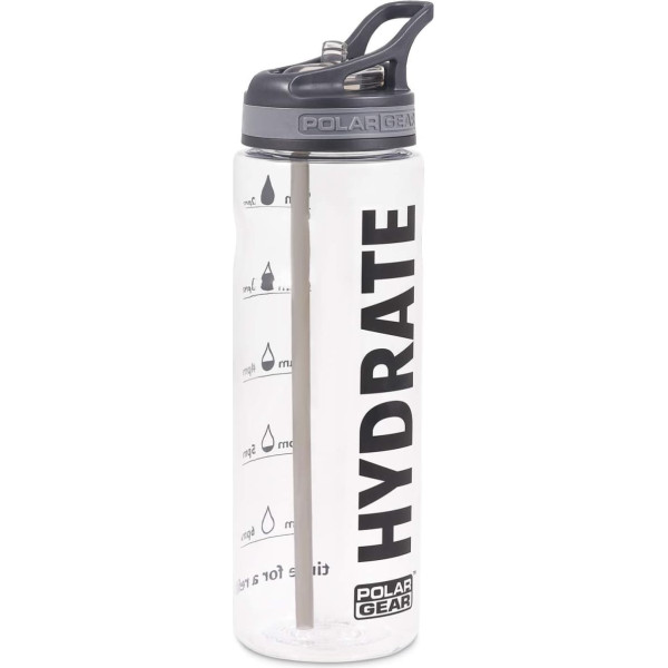 Polar Gear 750ml Tracker Water Bottle with Straw - BPA Free Reusable Water Bottle with Time Markers - Running Water Bottle Perfect for Gym, Cycling and Work, Black