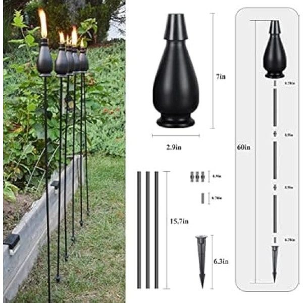 DIKAIDA 6 Pack Outdoor Light Torches 60 Inch Flickering Flame Outdoor Lighting Metal Light Torches for Outdoor Citronella Torches for Camping Garden Patio Pathway (Jet Black)