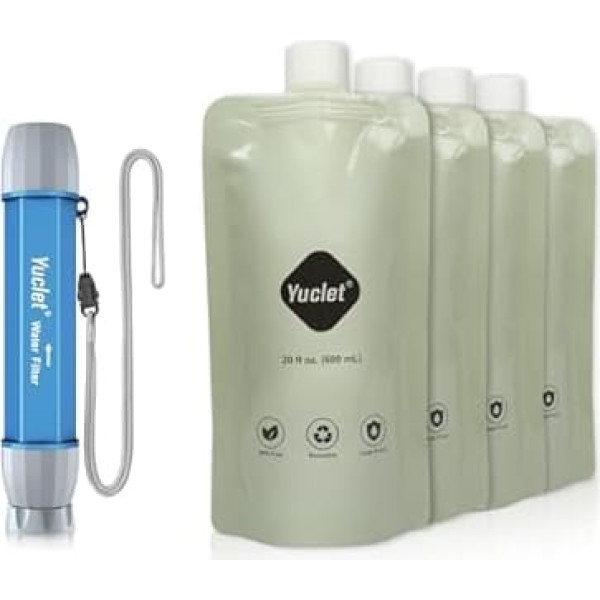 Yuclet Squeeze Water Filter System с 4 пакетами для воды Squeeze и 0,1 микронным фильтром для воды Straw Survival Equipment for Camping, Travel, Backpacking, Hiking and Emergency Preparedness