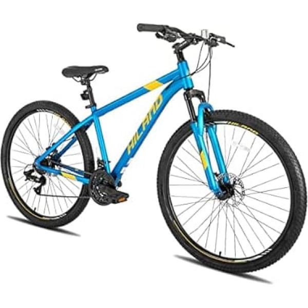 Hiland 29 Inch Mountain Bike MTB Hardtail with Spoke Wheels 431 mm / 482 mm Aluminium Frame 21 Speed Gear Disc Brake Suspension Fork Men Women Blue/Black
