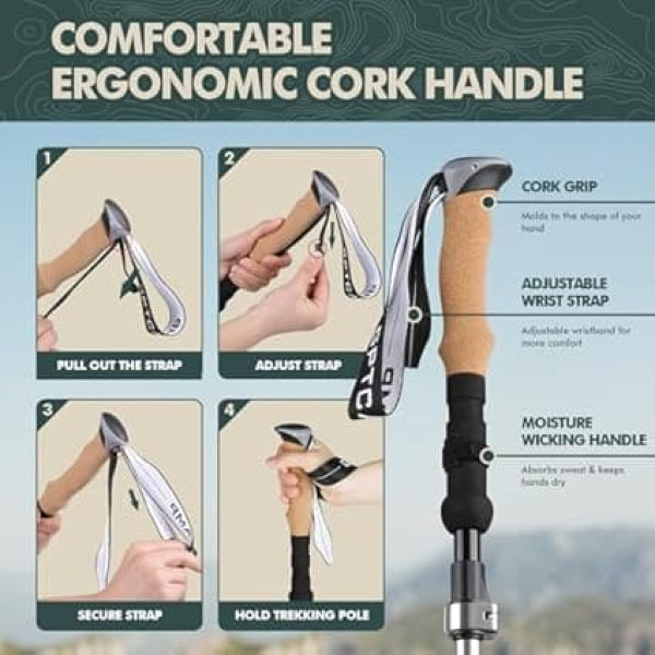 GPTCAMP Nordic Walking Stick, TPZ-1, RED 2pc складные складные походные палки с металлическим замком, пробковая ручка, легкие 7075 алюминиевые треккинговые пал