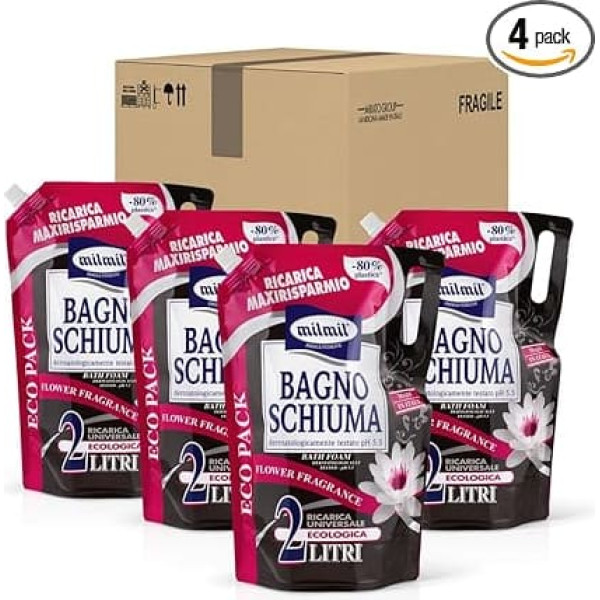 Milmil Пена для ванны с цветочным ароматом Удобный размер Дерматологически протестировано - 4 x 2000 мл