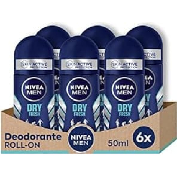 NIVEA MEN Dry Fresh Roll-On Deodorant 6 x 50 ml, мужской дезодорант с двойной активной формулой, анти-выдыхаемый дезодорант для 72 часов интенсивной свежести на