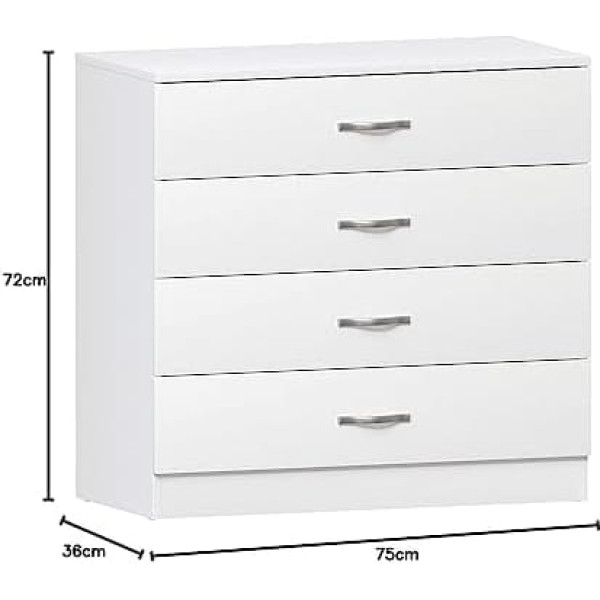 Vida Designs RIANO Белый комод с 4 металлическими ручками и полозьями, уникальная мебель для спальни с антигнущимися ящиками, белый, 72 x 75 x 36 см