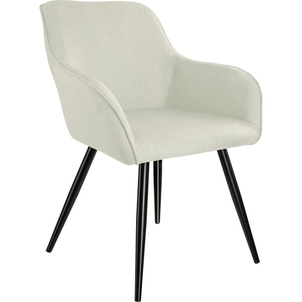 Tectake 800847 Обеденный стул с подлокотниками, льняной вид, мягкое сиденье, черные металлические ножки, для гостиной, столовой, кухни и офиса (кре
