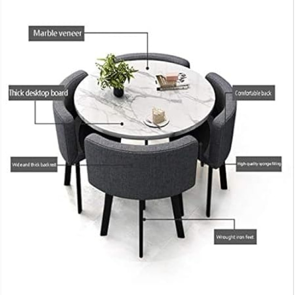 Generisch Современный мраморный журнальный столик с четырьмя стульями для балкона, гостиной и офисной приемной Идеально подходит для обеденны