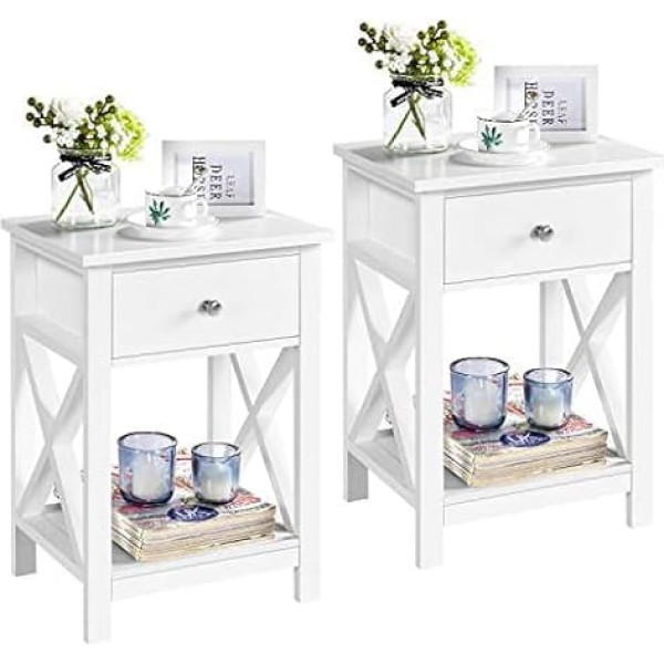 Yaheetech Комплект из 2 прикроватных тумбочек с 1 ящиком и открытым отделением для хранения Боковой столик Х-образные опорные ножки Современная