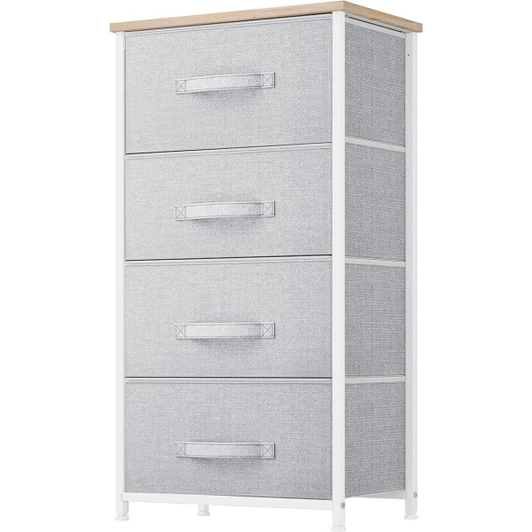 Yitahome Комод с 4 ящиками, шкаф, тканевые ящики с ручками, металлический каркас, прочный, светло-серый