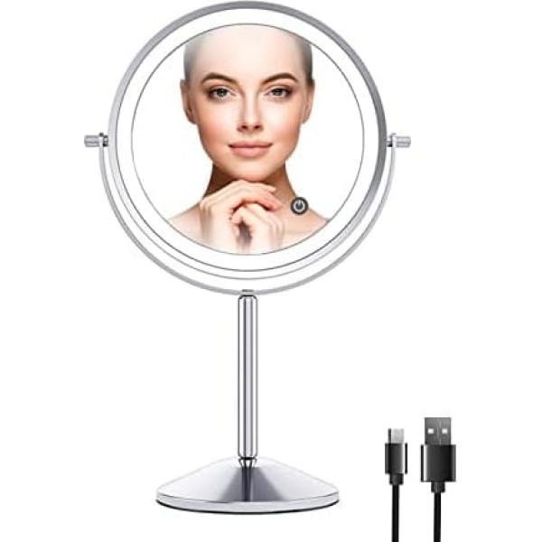 Illumaxinf Косметическое зеркало с LED-подсветкой 5-кратное увеличение 360° Вращение Зеркало для макияжа с подсветкой 3 цвета подсветки Сенсорный