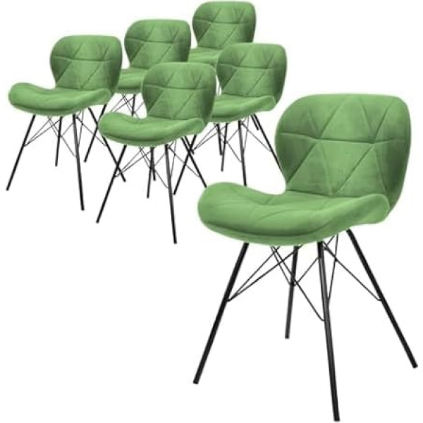 Ml Design Modern Living ML-Design Комплект из 6 обеденных стульев со спинкой, шалфей, кухонные стулья с бархатным чехлом, мягкие стулья с металлическими но