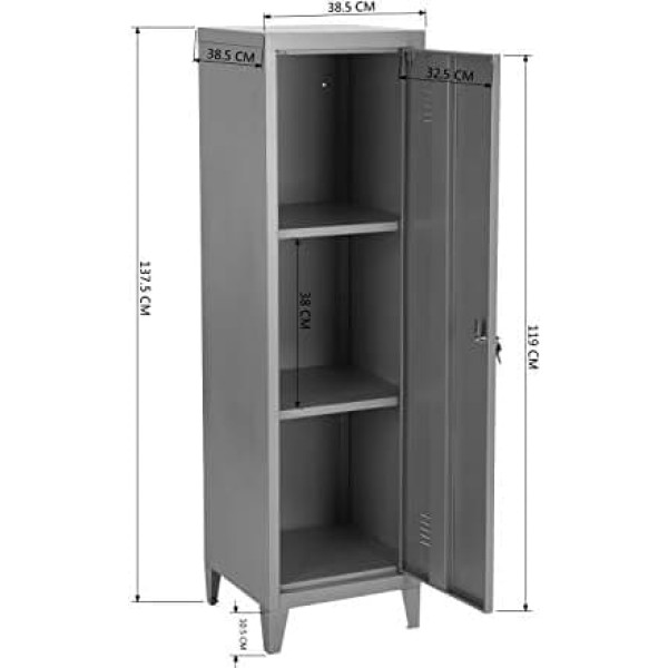 Furniturer Шкаф для бумаг в индустриальном стиле с ключевым замком Офисная мебель 38,2 x 38,2 x 137,3 см серый