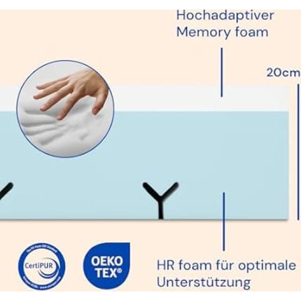 Gerialife Ортопедический вязкоэластичный матрас | Толщина 20 см | Свежая и мягкая ткань | Подходит для регулируемых и обычных кроватей (90x190)