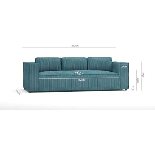 S-Style Möbel Nante Sofa 3-местный диван Гостиная Диван Лаунж Диван со шнуром Мебель Отдельностоящие подушки Диваны и кушетки Бирюзовый 230 x 92 x 64 см