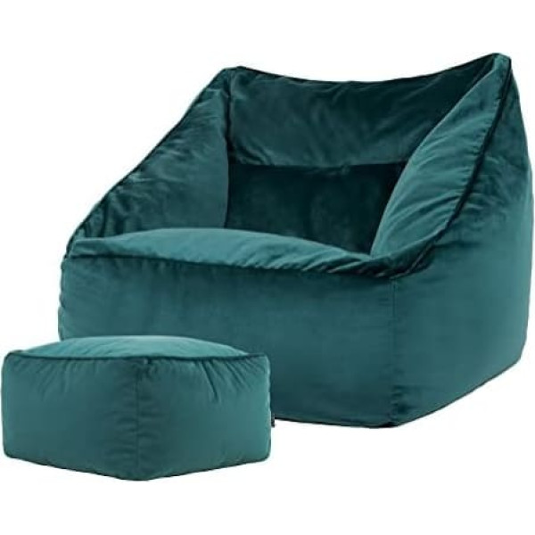 Icon Natalia Bean Bag Chair with Stool for Adults, Teal, Fluffy Velvet Fabric, Giant Velvet Bean Bag with Filling, Bean Bag Chair, Comfortable Chair for Living Room, Lounge, Bedroom, Office
