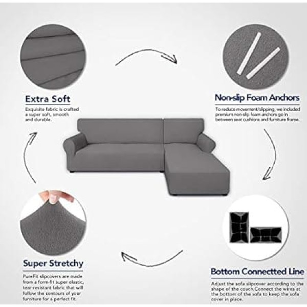 ‎Purefit Чехлы для секционных диванов PureFit Super Stretchy, нескользящие чехлы с эластичным дном для L-образных секционных диванов, идеально подходят