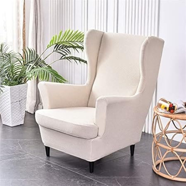 Highdi 2-Piece Wing Chair Cover, Armchair Throws, Wing Chair Protective Covers, Elastic Stretch Tiger Chair Cover with Armrest, High Backrest, Universal (Beige Knitted)