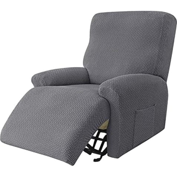 Highdi Twill Jacquard Armchair Cover 4-Piece Set, Complete Chair Protector for Recliner Chair, Luxurious Thick Recliner Chair Covers, Stretch Cover for TV Chair, Lounger, Armchair (Dark Grey)