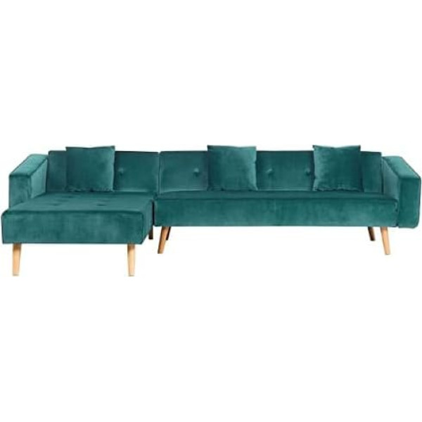 Beliani Угловой диван Vadso с правой стороны в стиле ретро из бархатной ткани зеленого цвета с декоративной подушкой