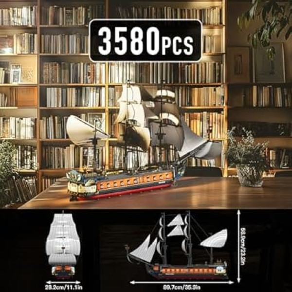 Mould King 13192 Clamping Blocks Ship Pirate Ship Building Blocks Model Kit Ship Flagship Toy with Fabric Sails Compatible with Other Brands (1698 Pieces)