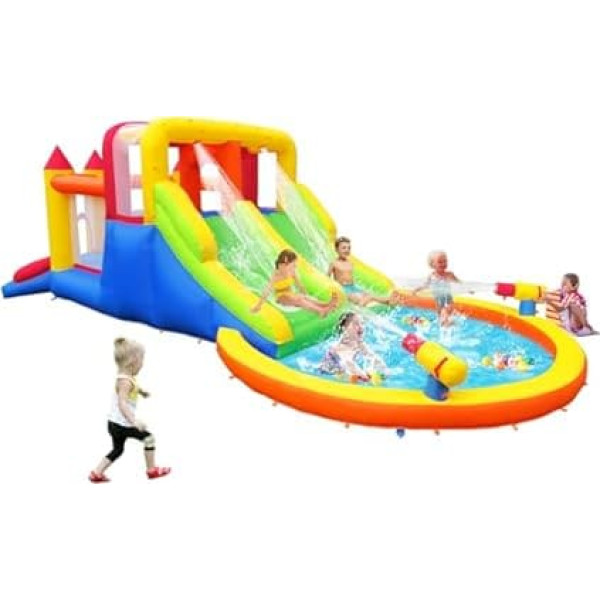 Baralir Большой надувной детский надувной замок с мокрой и сухой горкой, приключенческая площадка для сада, выдерживает до 5 детей/200 кг (без на