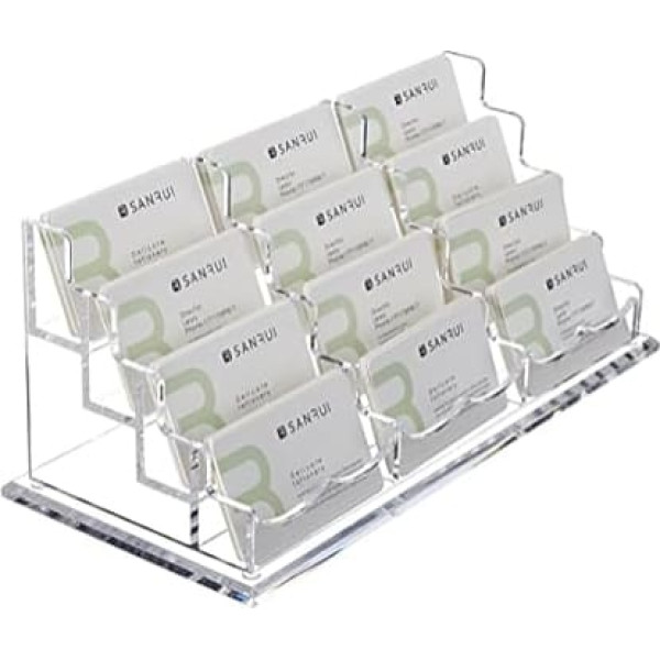 SANRUI Acryl-Visitenkartenhalter für Schreibtisch, Namenskarten-Halter, Büro, transparenter Visitenkartenständer, 4 Ebenen, 12 Fächer, passend für ca. 600 Visitenkarten