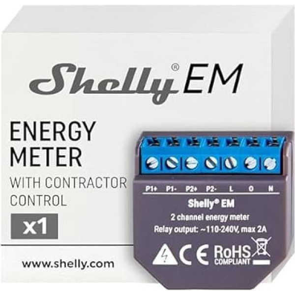 Shelly EM WiFi управляемый интеллектуальный счетчик энергии с контактором управления домашней автоматизации Alexa и Google Home совместимый iOS Android при