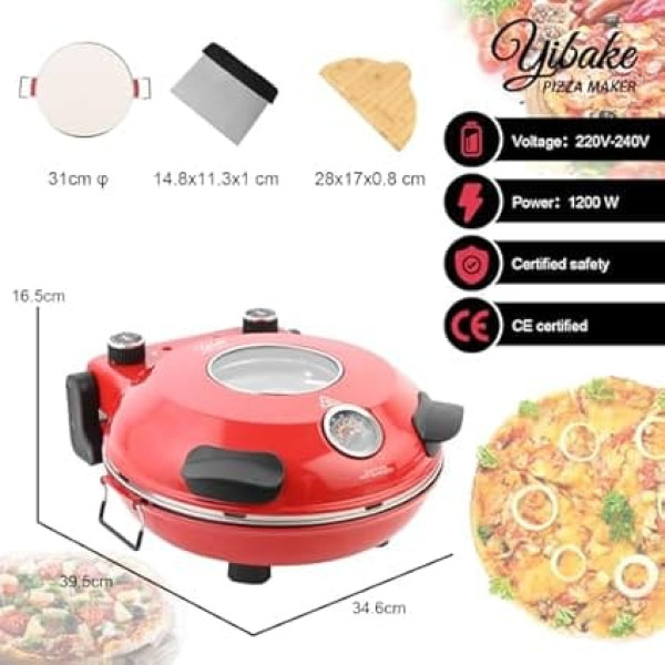 Электрическая печь для пиццы YIBAKE, 1200 Вт, 4 минуты на приготовление пиццы, огнеупорный камень для пиццы 31 см, максимальная температура 420°C с 5