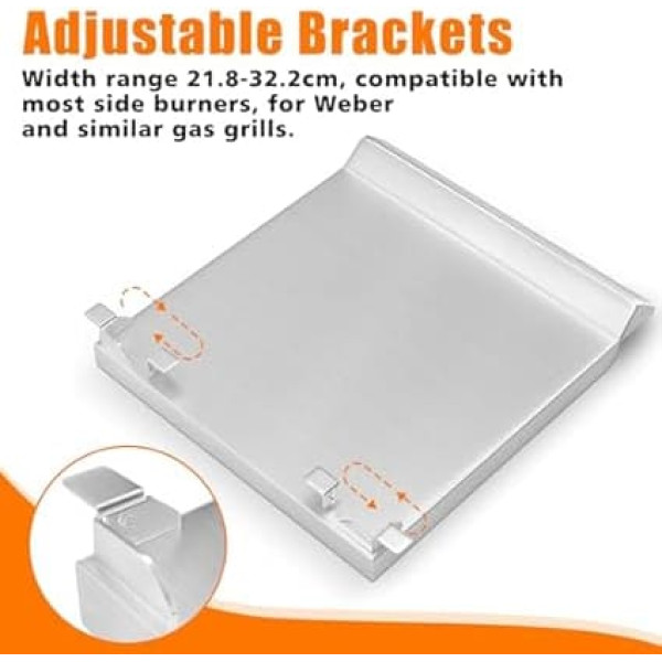 Пластина из нержавеющей стали GFTIME 33 x 28 см для боковой горелки газового гриля - регулируемые кронштейны, легко чистится, подходит для Weber Spirit
