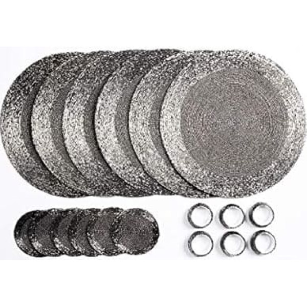 Penguin Home Набор из 18 плейсматов, подставок и колец для салфеток из стеклянных бусин - античный серебряный цвет - круглые плейсматы - ручная раб