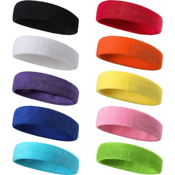 Упаковка из 10 мужских женских повязок на голову Спортивная повязка на лоб Эластичная лента для волос из хлопка