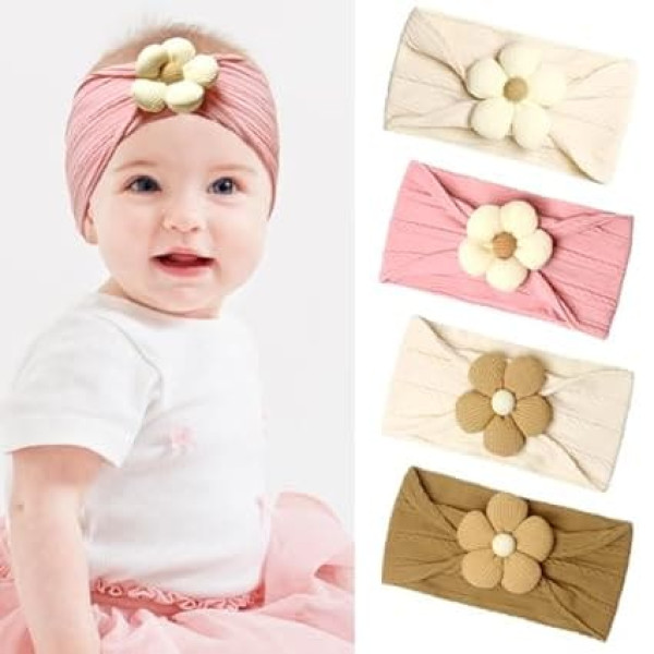 KU Pack of 4 Baby Headband Flowers Hair Band Baby Girl Baby Headbands Turban Hat Baby Soft Elastic Hair Bands Baby Newborn Girls Toddler Headbands for 0-6 Months