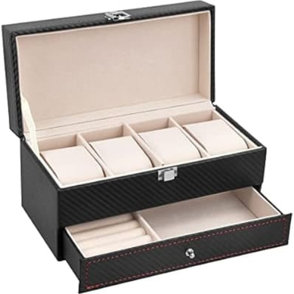 Коробка для часов 4 отделения для часов Коробка для часов Коробка для хранения часов Коробка для ювелирных изделий Черный Коробка для ювел