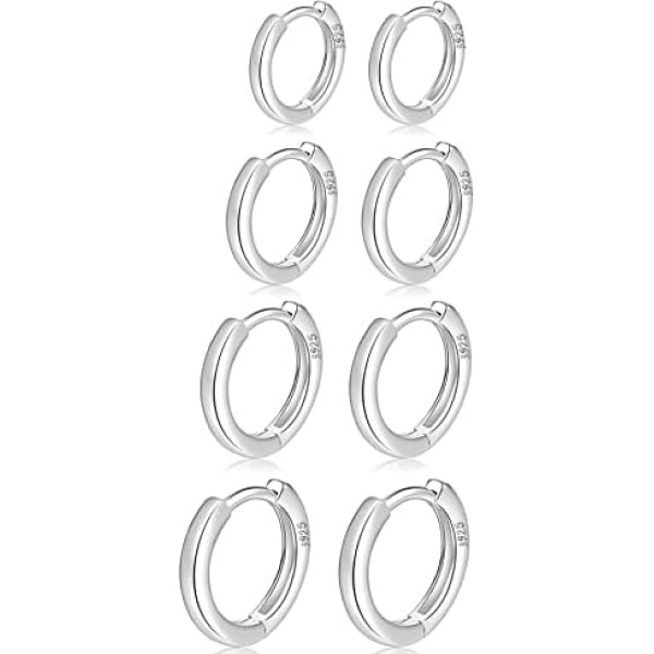4 пары маленьких обруч серьги для женщин 925 серебро пост Huggie обруч серьги набор 18 карат золото/серебро обруч серьги для девочек несколько пи