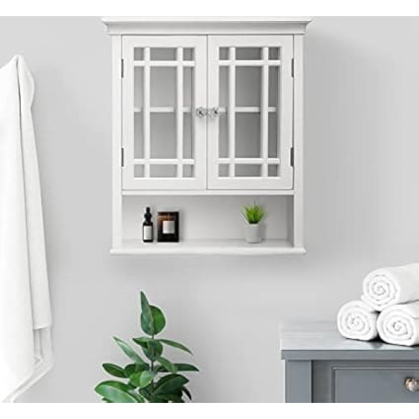 Elite Home Fashions Neal Collection Shelved Wall Cabinet with Cubby, White