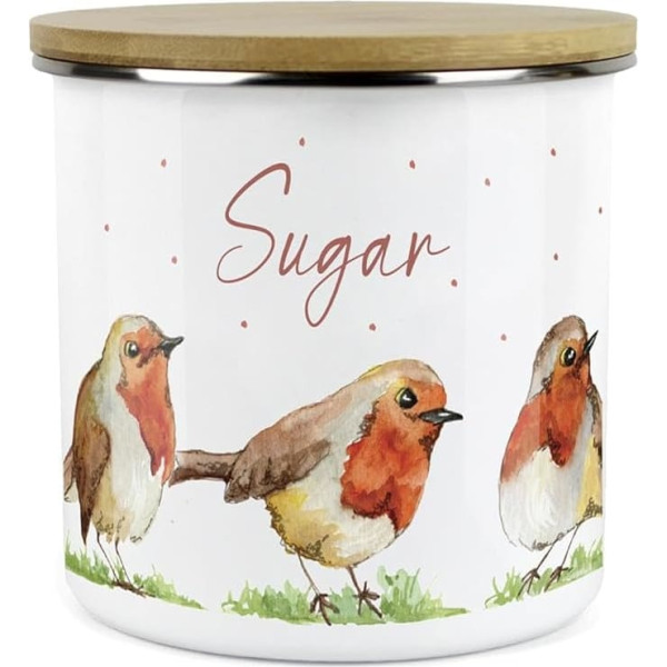 Контейнер для хранения сахара "Робинс" - Птицы Природа Животные Металл Эмаль Средний размер Контейнер для хранения продуктов