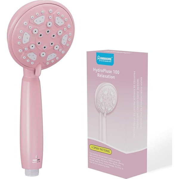 HNNHOME HydroPulse 100 мм Ручной душ высокого давления, 6 режимов распыления, универсальная замена душевой лейки, розовый