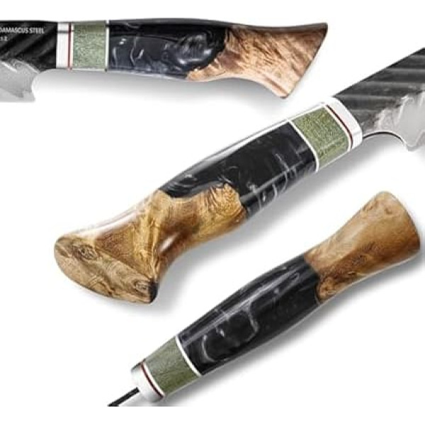 Дамасский нож, 12 см нож для фруктов с кожаными ножнами, 67-слойная легированная сталь для разделки - ручная ковка смолы и деревянная рукоятка