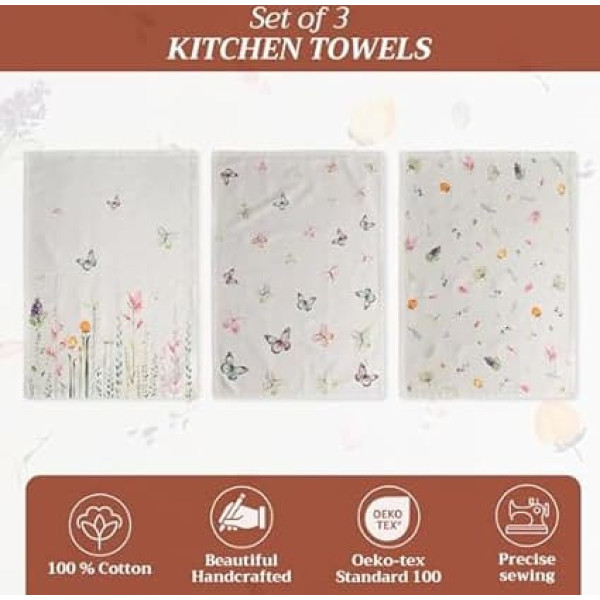 Maison d' Hermine Botanical Fresh 100% хлопок Комплект из 3 многоцелевых кухонных полотенец, полотенца для рук, весна/лето (50 см x 70 см)