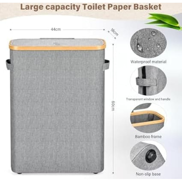 Корзина для хранения туалетной бумаги с крышкой, 47 л бамбуковый органайзер для туалетной бумаги, органайзер для ванной комнаты, наглядное