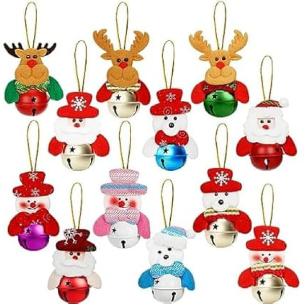 Belle Vous 12 частей колокольчиков для рождественской елки - Санта, Снеговик, Северный олень, Медведь, Лось и другие маленькие колокольчики с плю