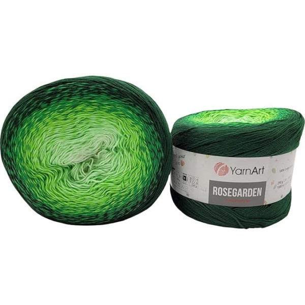 500 г Ilkadim Export Rosegarden, 500 г Bobbel Wool Colour Gradient, 100% хлопок, шерсть для вязания бобби, разноцветный (бело-зеленый 319)