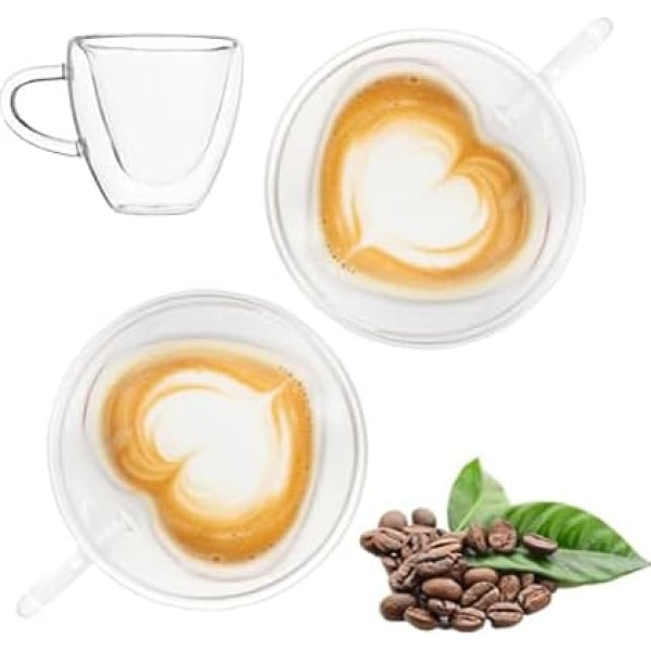 Стеклянные кофейные чашки с двойными стенками, набор из 2 чашек-сердечек, кофейные стаканы, чайные стаканы с ручкой, стеклянные кофейные ча