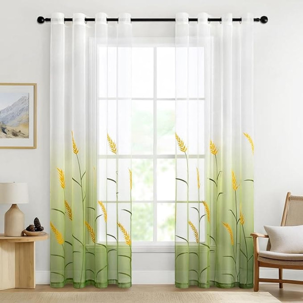 MIULEE Шторы Вышитые Прозрачные Шторы Цвет Градиент Вуаль Sheer Комплект из 2 Мотивы Занавес с люверсами Декоративный Занавес Окно Занавес для с