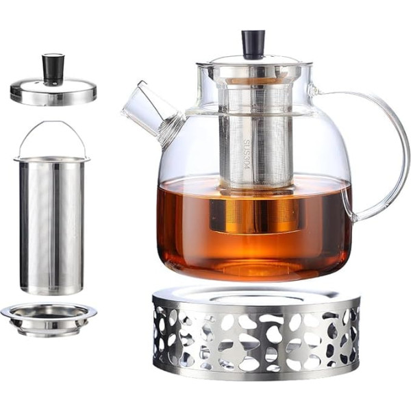 Большой заварочный чайник с ситечком и подогревателем, долго сохраняет тепло, безопасен для посудомоечной машины, стеклянный чайник, 1,5 л