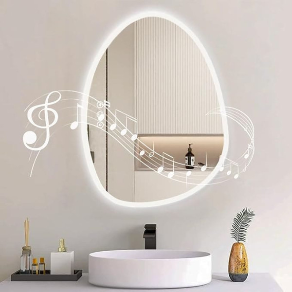 Зеркало для ванной комнаты с подсветкой, 50 x 68 см Зеркало для ванной комнаты с Bluetooth, сенсорный выключатель, 3 цвета подсветки, затемнение, ан