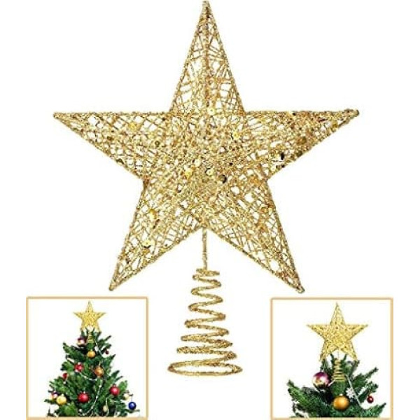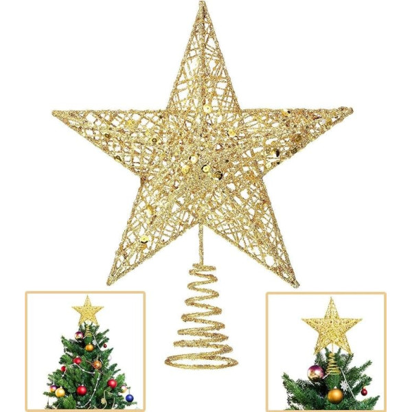 Рождественская елка топпер 8 дюймов золотой блеск 5 точечные звезды дерево топпер для рождественской елки украшения Рождество дома партии