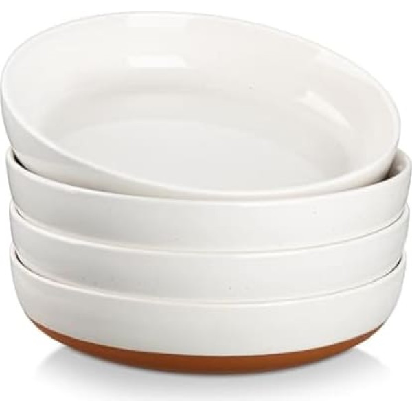 MALACASA TARA Тарелки для макарон, большие глубокие, набор из 4, суповые тарелки из керамогранита, миски для макарон, глубокие тарелки для спагетт